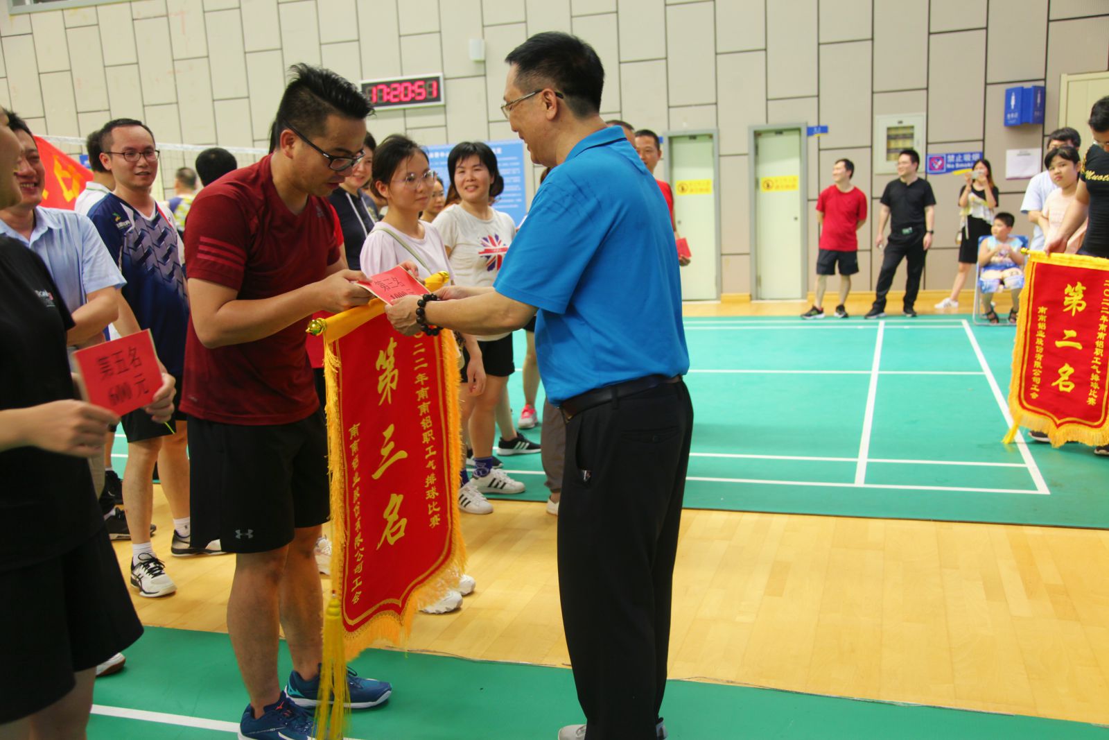 ????通過小組循環賽、淘汰賽、半決賽以及決賽的精彩比拼,最終材料綜合管理支部2隊奪得了冠軍,資源公司取得亞軍,天恒1隊獲得季軍,另外,鋁工程1隊是本次比賽的第四名。其余的材料綜合管理支部1隊、材料生產管理支部2隊、鋁工程4隊、材料生產管理支部1隊為并列第五名。比賽最后,公司工會副主席陳平為各獲名次隊伍頒發了錦旗和獎金。